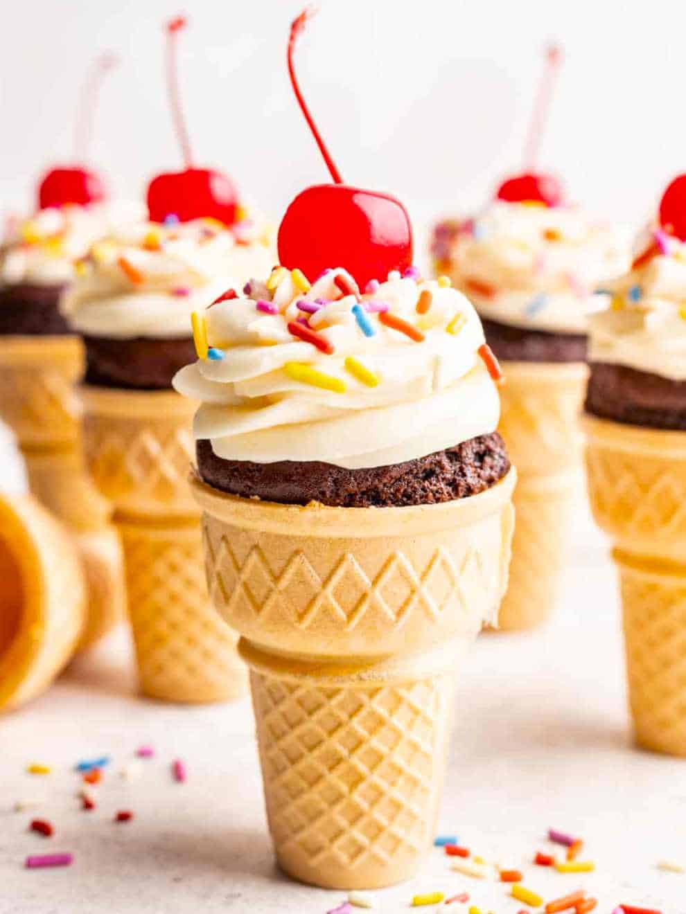 Homemade chocolate cake. Baked in a cone. MIND. BLOWN. Top with vanilla frosting and sprinkles, and you’ve got a cute treat for any birthday shindig.