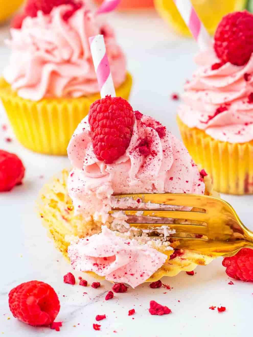 Lemon and raspberry didn’t just join forces to improve the taste of these cupcakes; they did it to improve my mood, which they did, spectacularly.