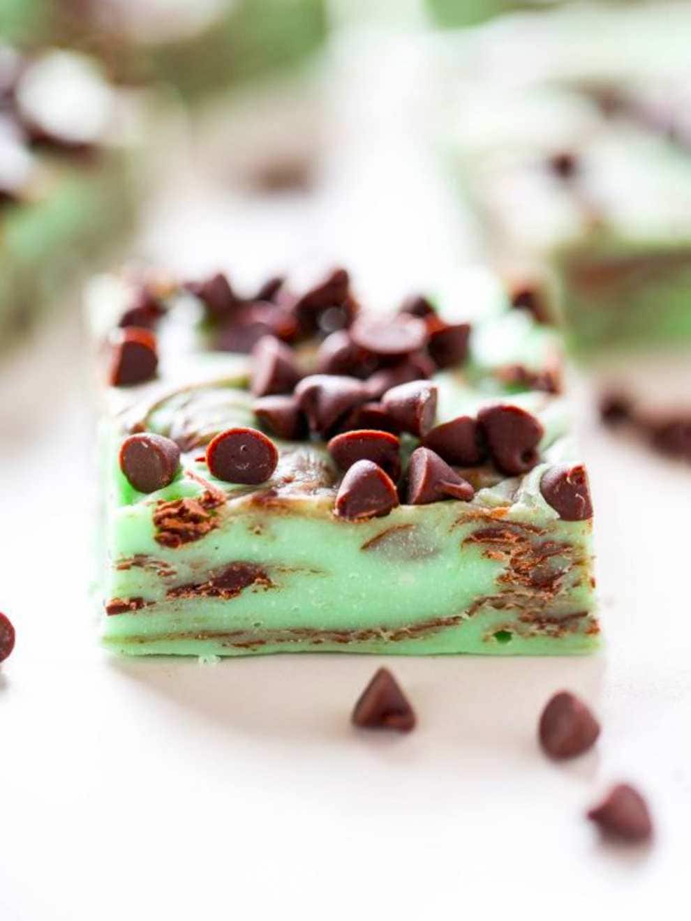 Smooth, cool, and filled with chocolate chips, this treat is classic mint-chip ice cream in fudge form!