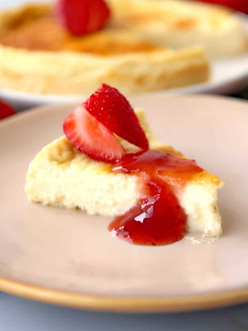 Cottage cheese isn’t just pulling its weight here; it’s the MVP, giving this cheesecake a protein boost.