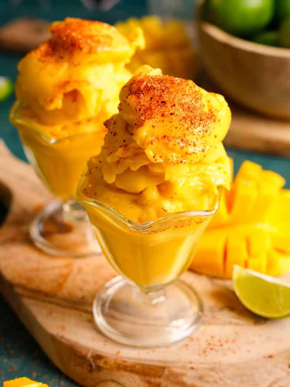 This is an incredibly refreshing sorbet, made with frozen mango and fresh lime for a full-blown tropical experience.