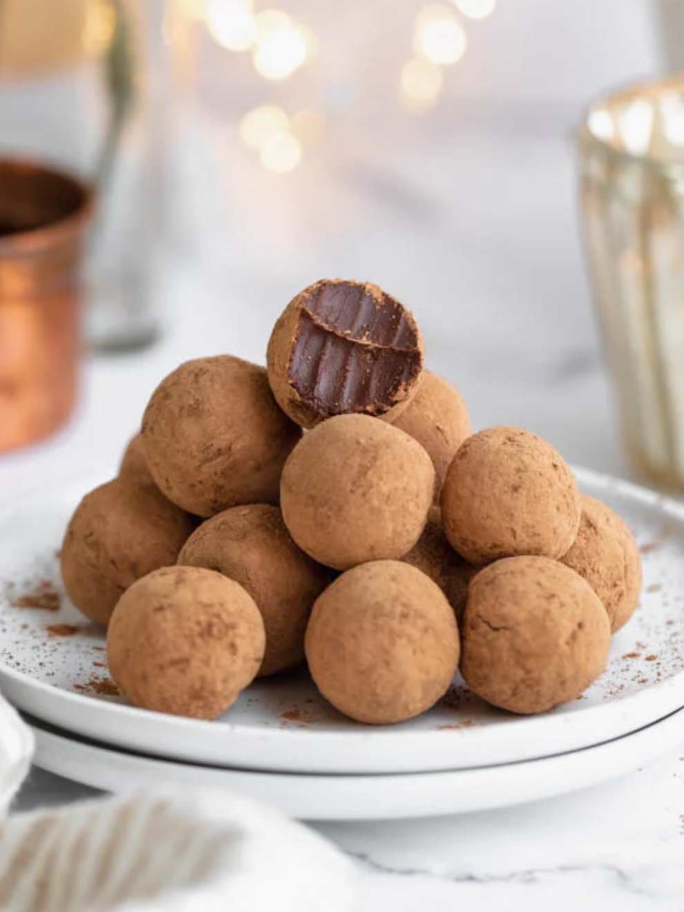 These truffles are proof life doesn’t need sugar. Somehow, five ingredients (sugar-free choc, heavy cream, vanilla, stevia, cocoa powder) create truffles so creamy and rich you’d trade your firstborn for them…except that at 100 cals each you don’t have to.