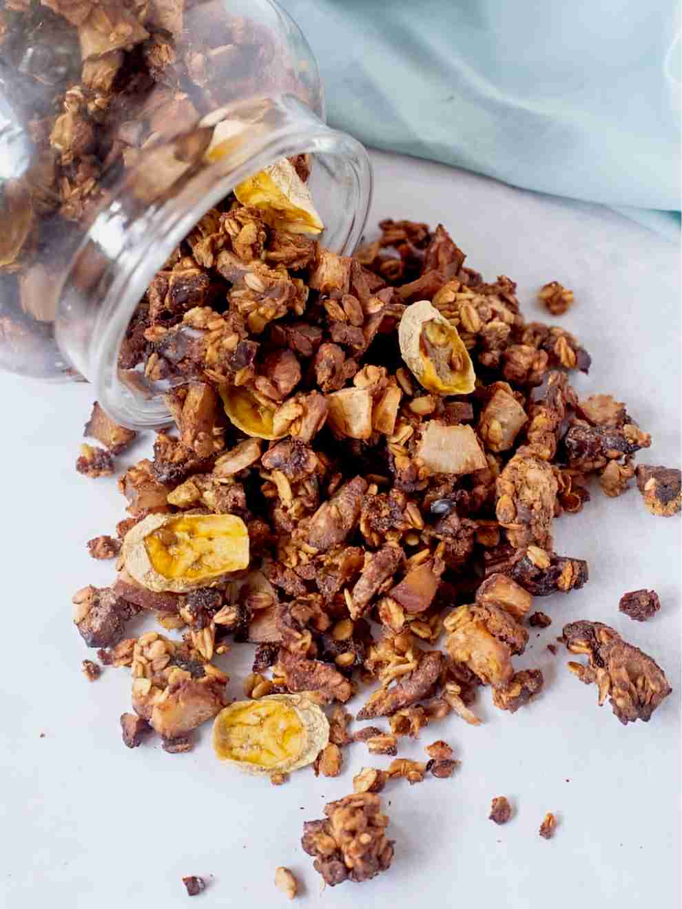 Let’s get our homemade granola on! Oats, nuts, and coconut unite for crunchy bliss. Sourdough starter brings a tangy twist, and we’ve got chewy sweetness thanks to dates ‘n’ banana slices. Use whatever nuts you want, and get ready to feel super healthy without store-bought guilt.